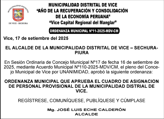 Ordenanza Municipal N° 011 2025 MDV-CM