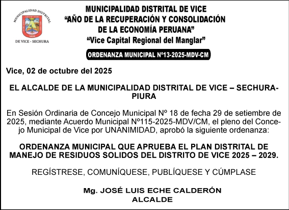 Ordenanza Municipal N° 13-2025 MDV-CM