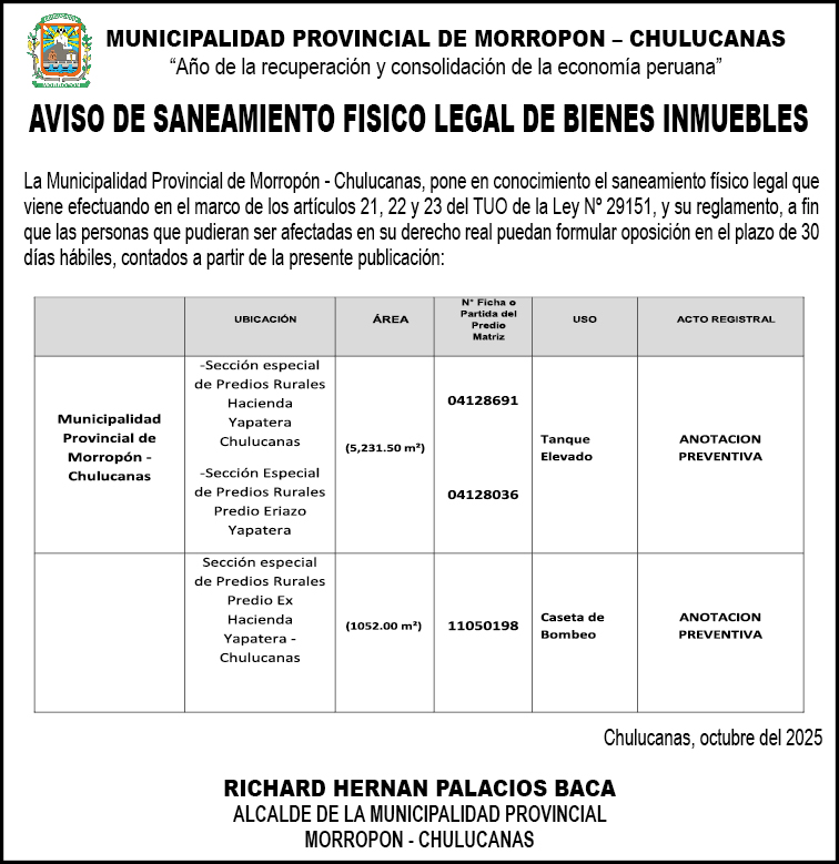 Aviso Saneamiento Físico Legal De Bienes Inmuebles