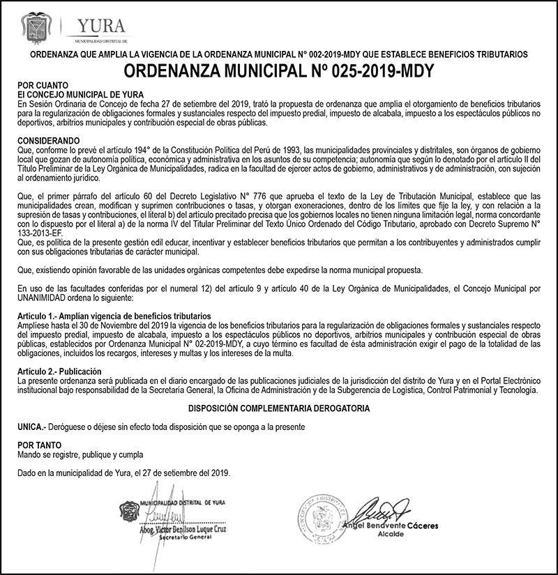 Ordenanza Municipal N°025