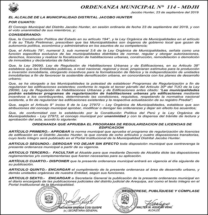 Ordenanza Municipal N°114