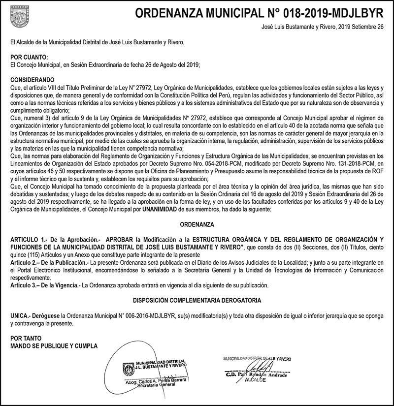 Municipalidad Distrital de Jose Luis Bustamante y Rivero