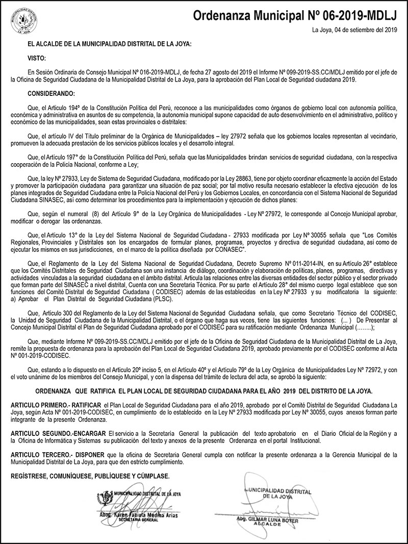 Ordenanza Municipal N°06