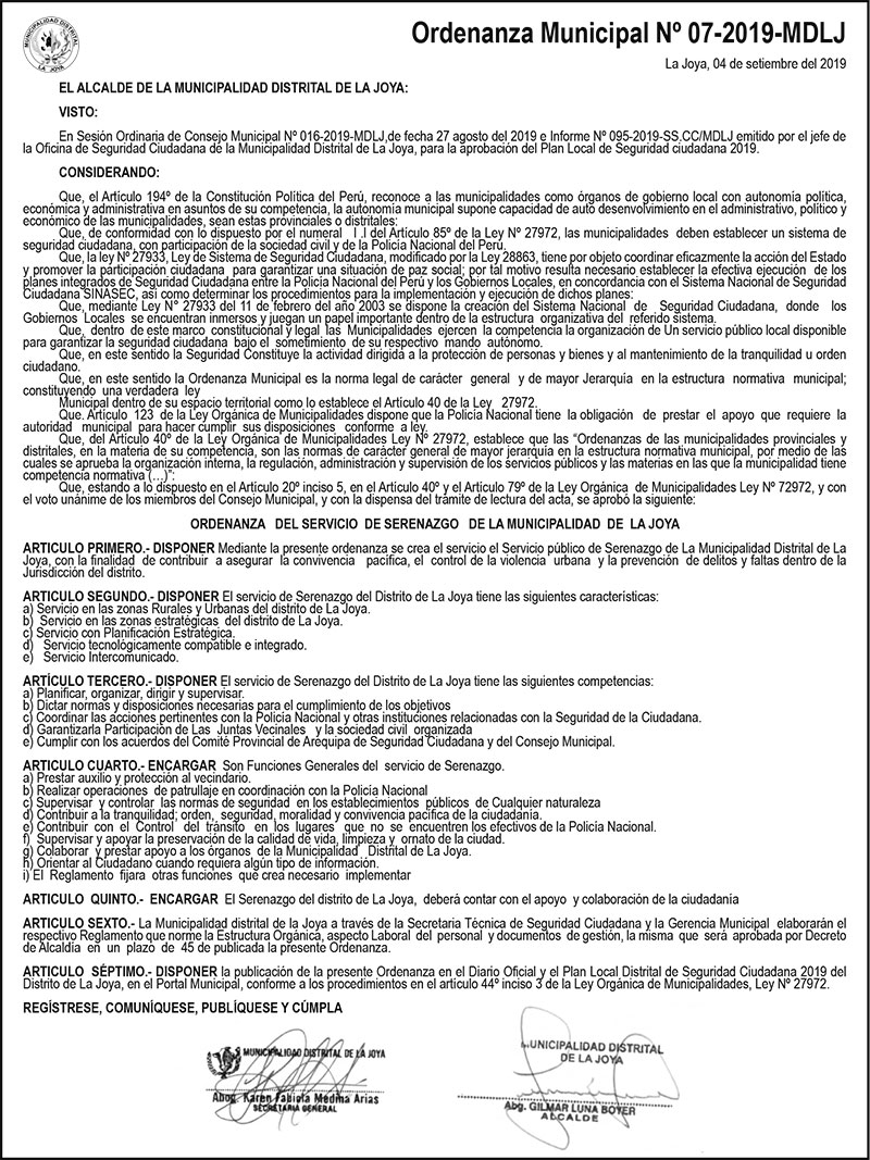 Ordenanza Municipal N°07
