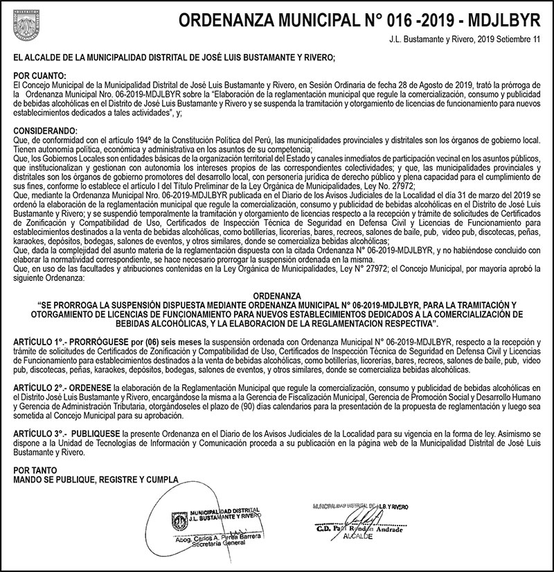 Ordenanza Municipal N°16
