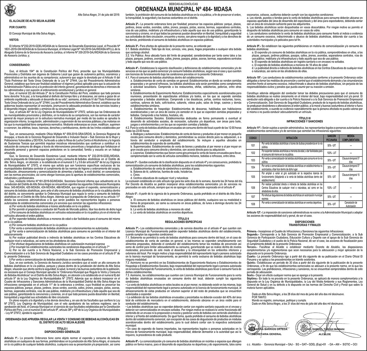 Ordenanza Municipal N°484
