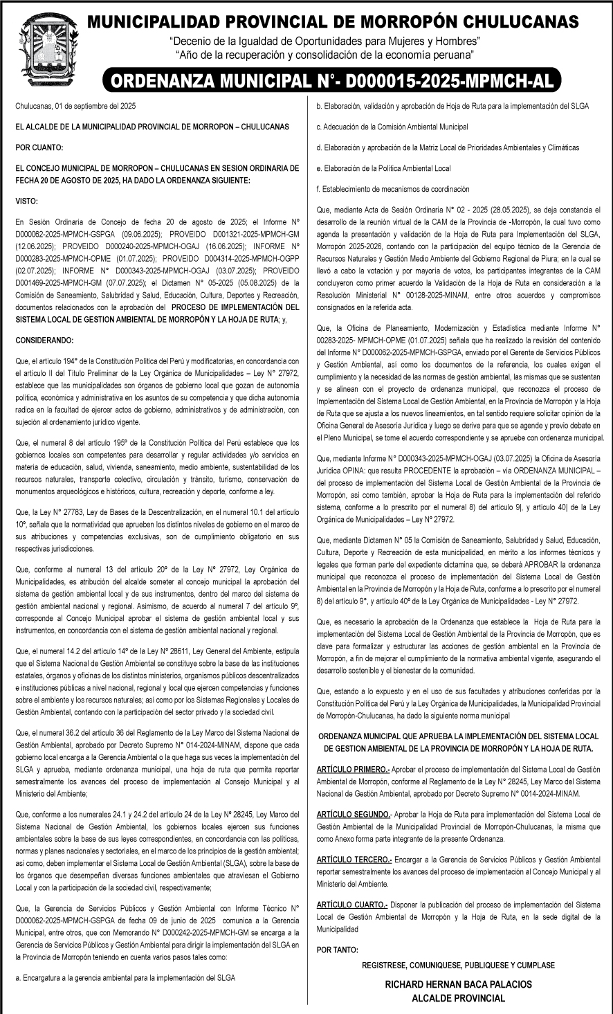 Ordenanza Municipal N° D000015 2025 MPMCH-AL