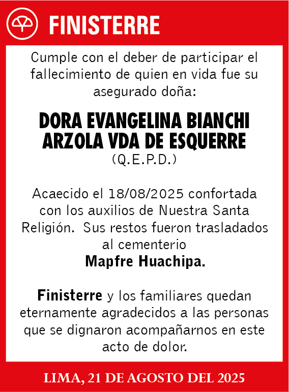 DORA EVANGELINA BIANCHI ARZOLA VDA DE ESQUERRE