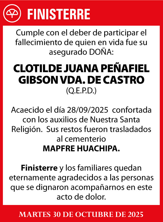 CLOTILDE JUANA PEÑAFIEL GIBSON VDA. DE CASTRO