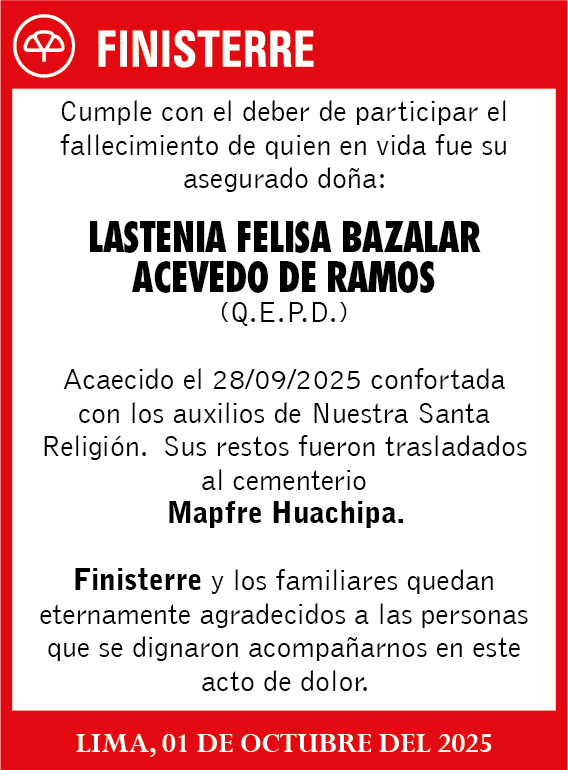LASTENIA FELISA BAZALAR ACEVEDO DE RAMOS